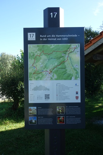 Die Texttafeln stehen an mehreren Stellen des Wanderweges 17 "Rund um die Hammerschmiede - In der Heimat von UDO". Foto: 15.09.2025/ Stand 27.09.2025